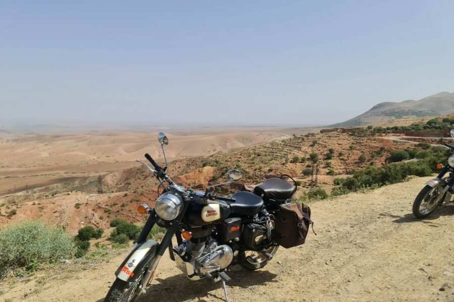 Au guidon de vos Royal Enfield, vous parcourrez des routes sinueuses jalonnées de kasbahs ancestrales, de palmeraies verdoyantes et de panoramas à couper le souffle. Chaque étape est pensée pour vous offrir un équilibre entre aventure, détente et découverte, avec des hébergements typiques et des activités uniques, comme une balade à dos de dromadaire dans les dunes de Merzouga au coucher du soleil.